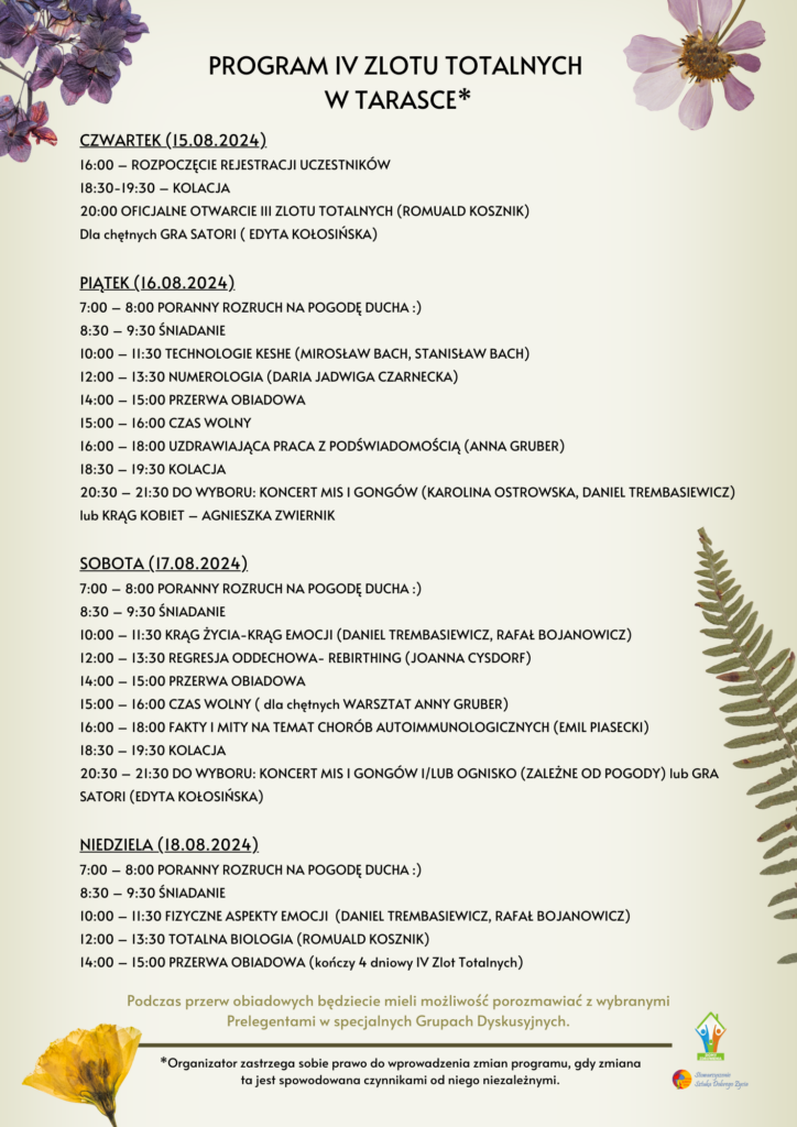 | Serdecznie zapraszamy na IV Zlot Totalnych! Na poprzednich Festiwalach cieszyliśmy się razem ogromną frekwencją. W tym roku również zapowiada się duża ilość uczestników. Masz ochotę dołączyć? Przyjechać może każdy! Zarówno absolwenci i obecnych kursantów Totalnej Biologii, jak i Ci, którzy dopiero zaczynają swoją przygodę z tą fascynującą dziedziną. Zlot to doskonała okazja do integracji, nawiązywania nowych znajomości oraz wymiany wiedzy i doświadczeń. Każdy znajdzie tutaj coś dla siebie! |